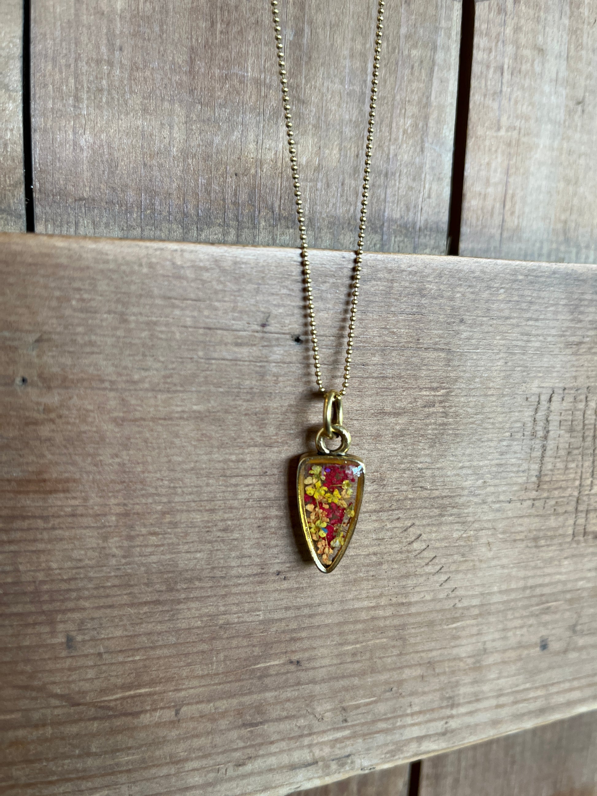 Les pendentifs des colliers sont fabriqués avec des accessoires Nunn Design, fabriqués aux États-Unis. Les pendentifs et les chaînes sont en argent sterling 999 ou plaqués or 24 carats sur du laiton et sont sans nickel et sans plomb.