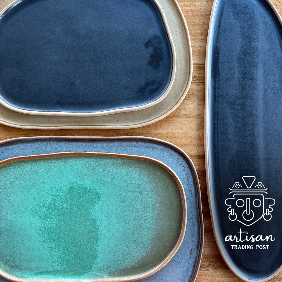 Quoi de mieux qu'une charcuterie au bord du quai au coucher du soleil dans votre lieu de bonheur de Muskoka ? Nos plateaux en céramique uniques ont été fabriqués à la main avec soin à Cowansville, au Québec, par l'artisane Catherie Bouchard. Chaque plateau est unique, avec des lignes organiques qui évoquent la forme d'une vue plongeante sur un lac.