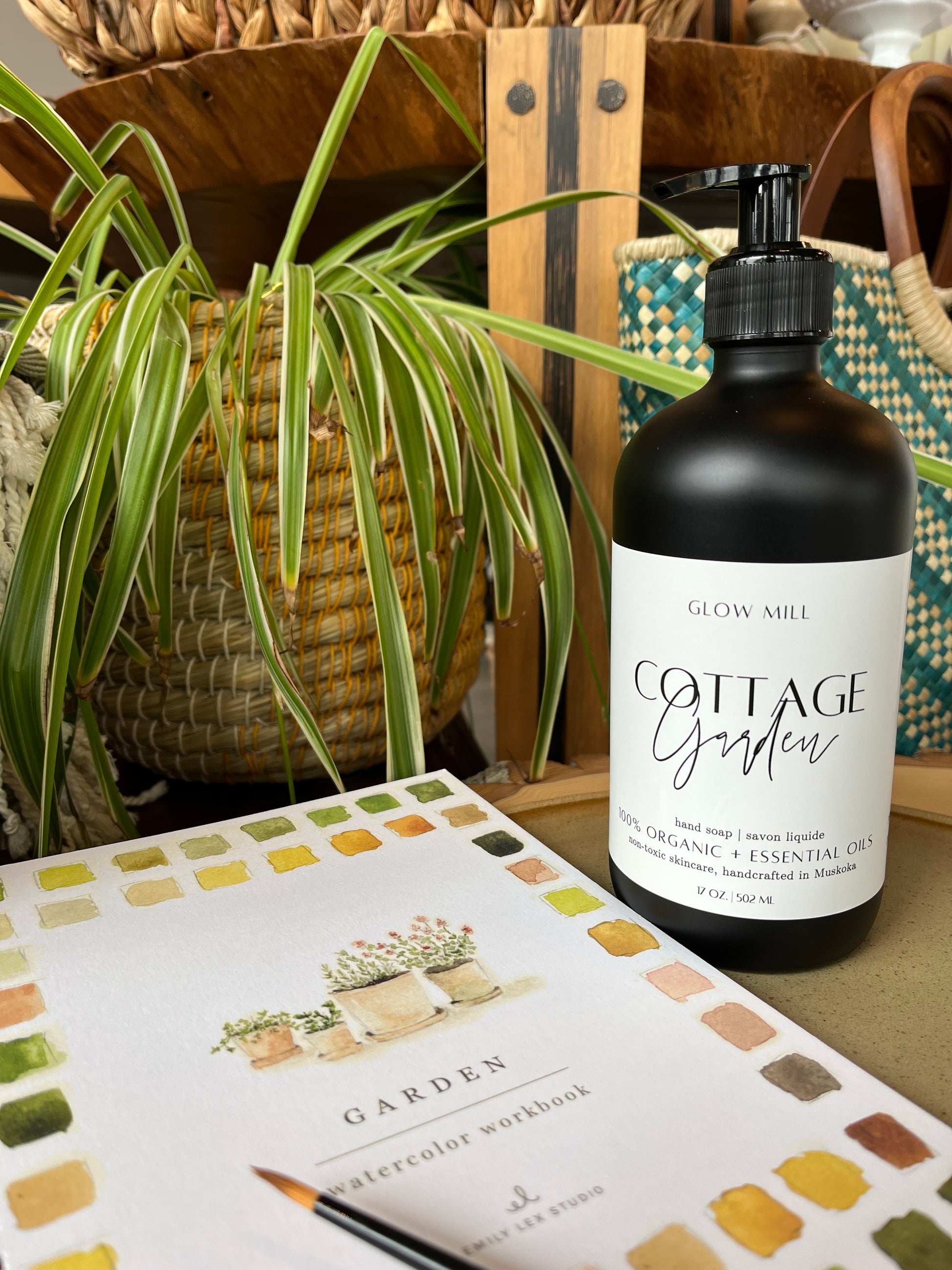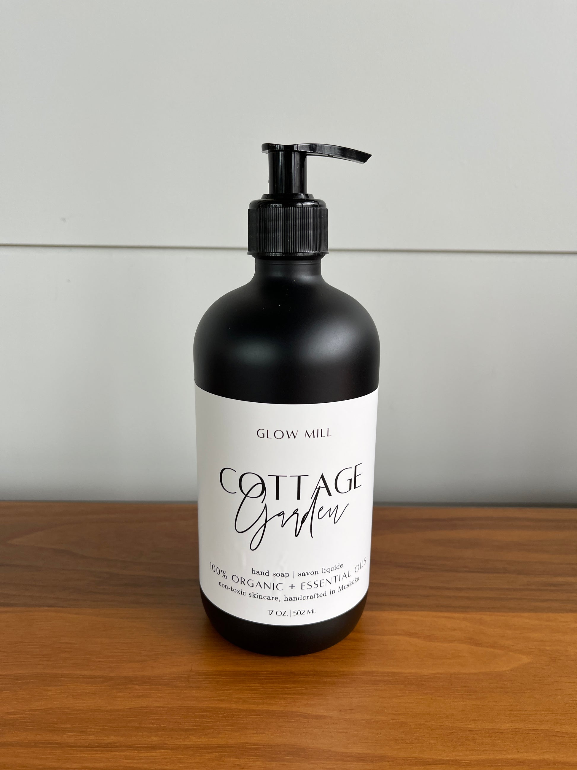 This 17-ounce glass bottle of luxurious liquid hand soap is handmade in small batches in Muskoka using organic oils and scented with our signature essential oil blends.
