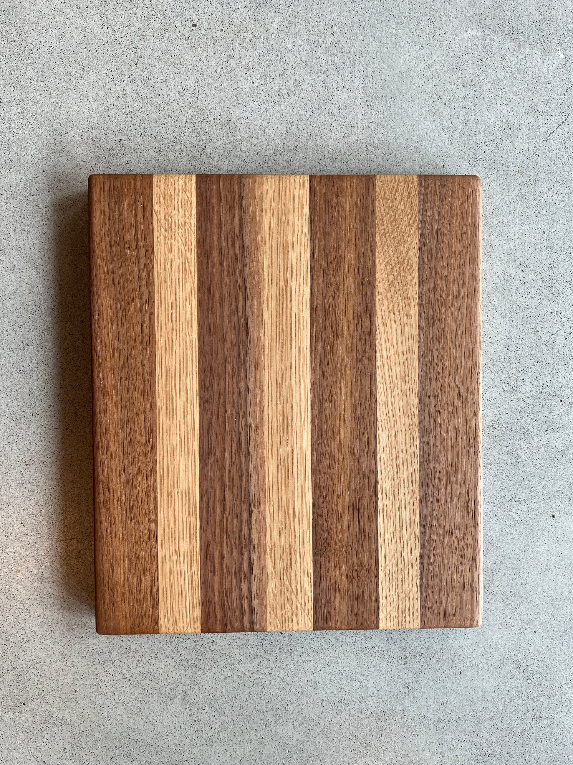 These beautiful cutting boards are created by local artisan Keith Tribe in Oro-Medonte Ontario. Using many different and interesting species of wood, the grain and detail in each board is unique. They also make an elegant statement piece on their own and add a warm and rustic touch to any table decor.
