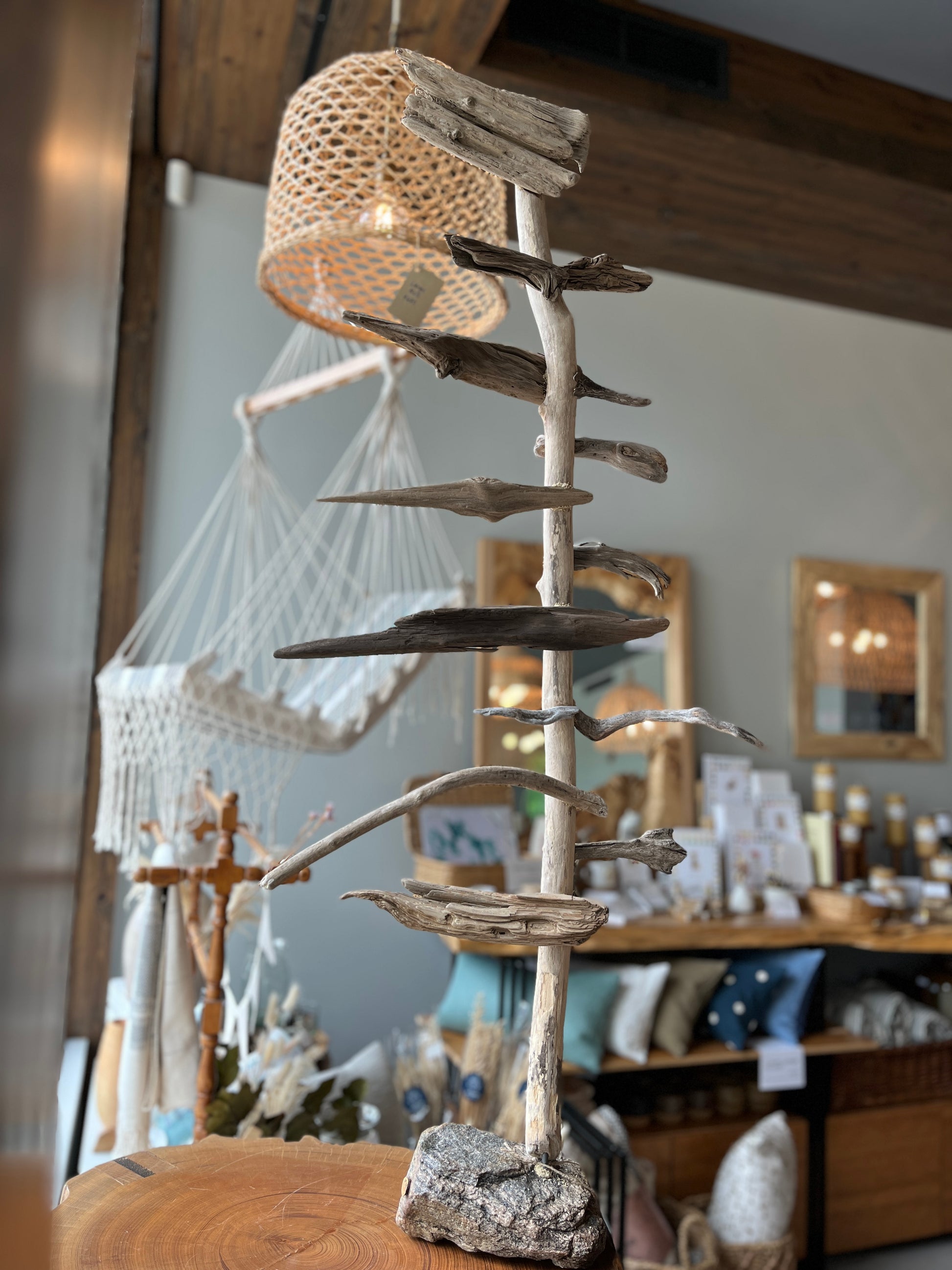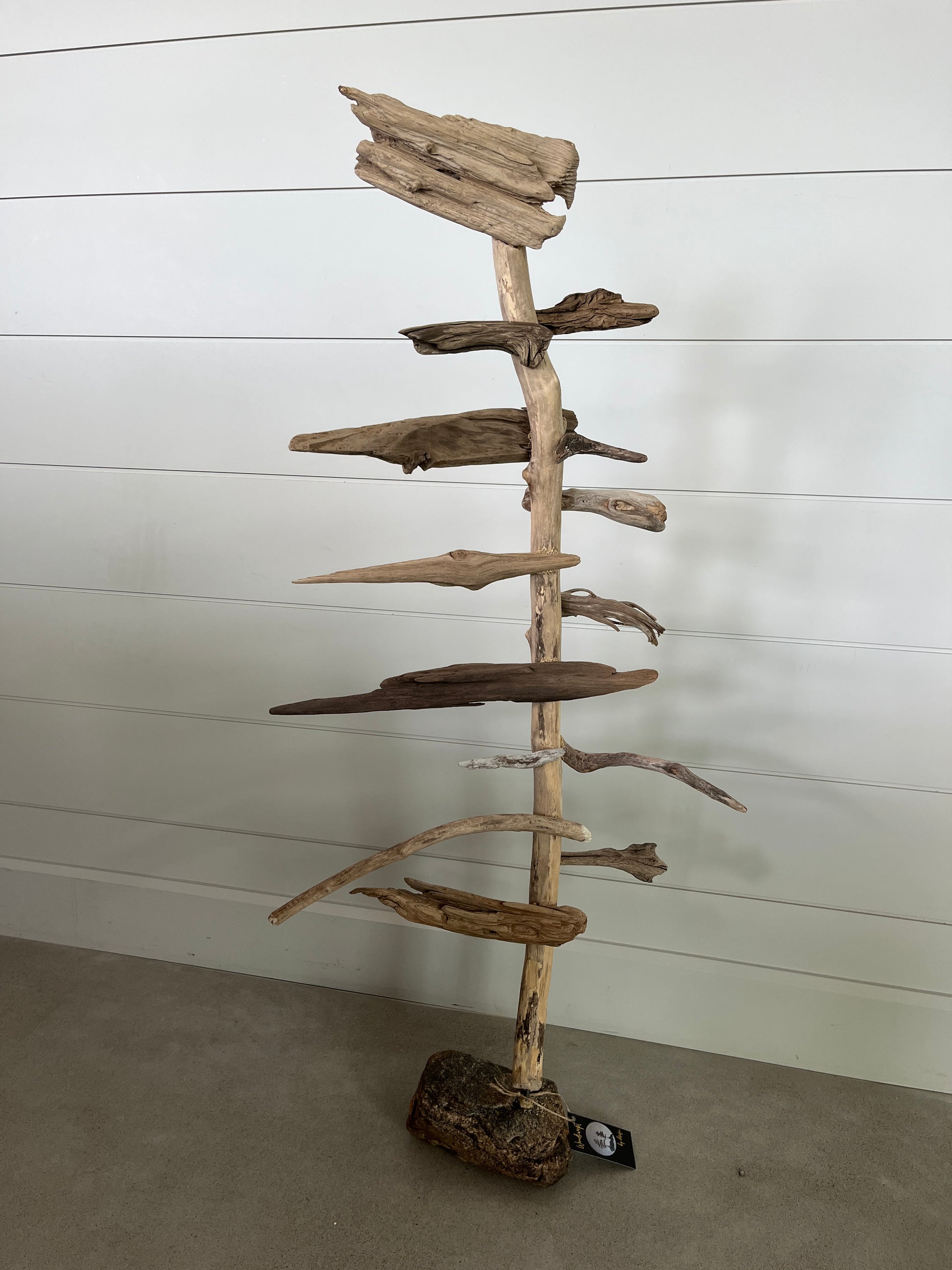Transform your living space with our stunning Large Windswept Pine Driftwood Sculpture. Handcrafted by local artisan Michelle Milligan from natural driftwood, this windswept pine sculpture brings a touch of nature indoors. Its unique design creates a sense of movement and adds a rustic charm to any room. Elevate your home decor with this beautiful and one-of-a-kind piece.