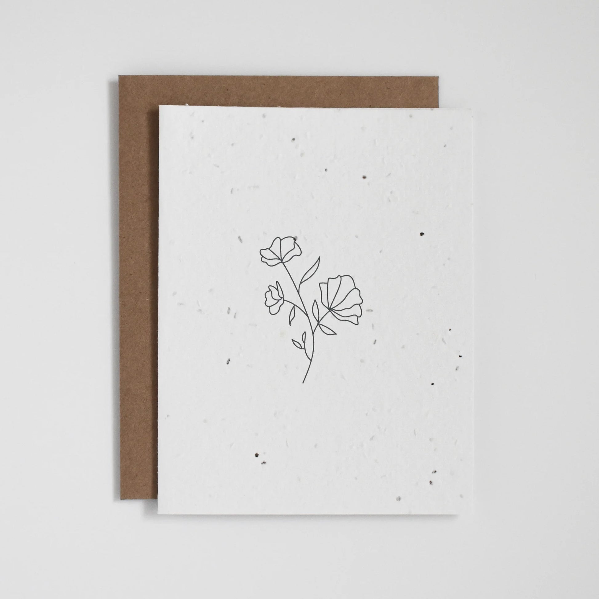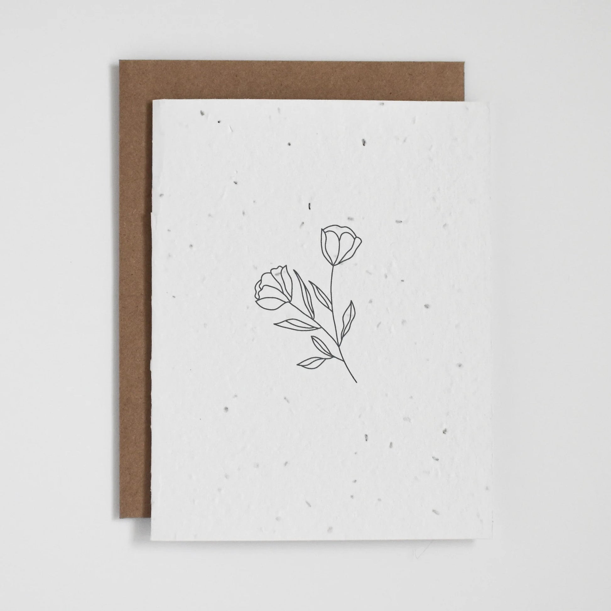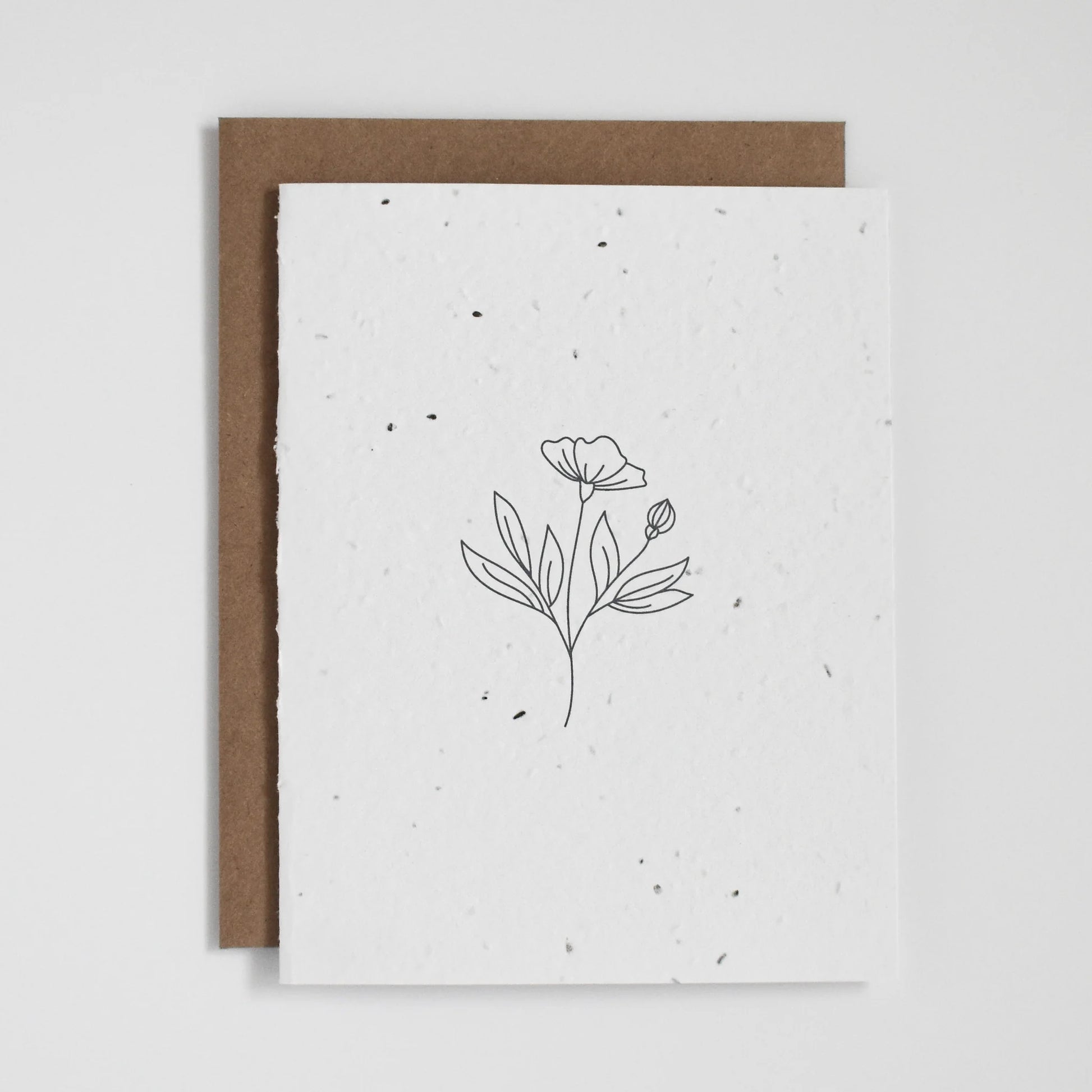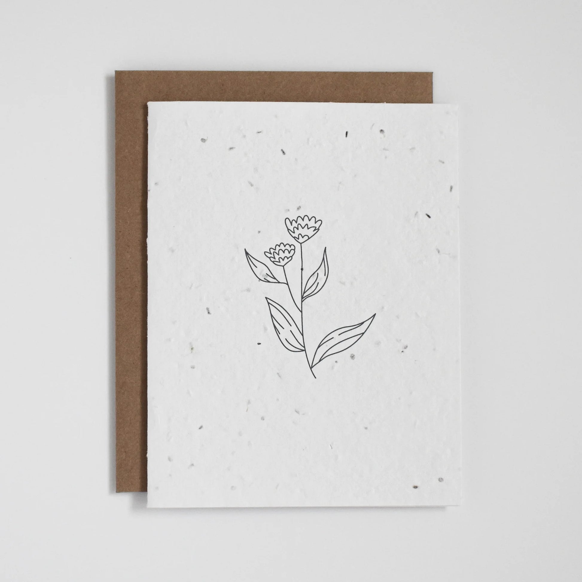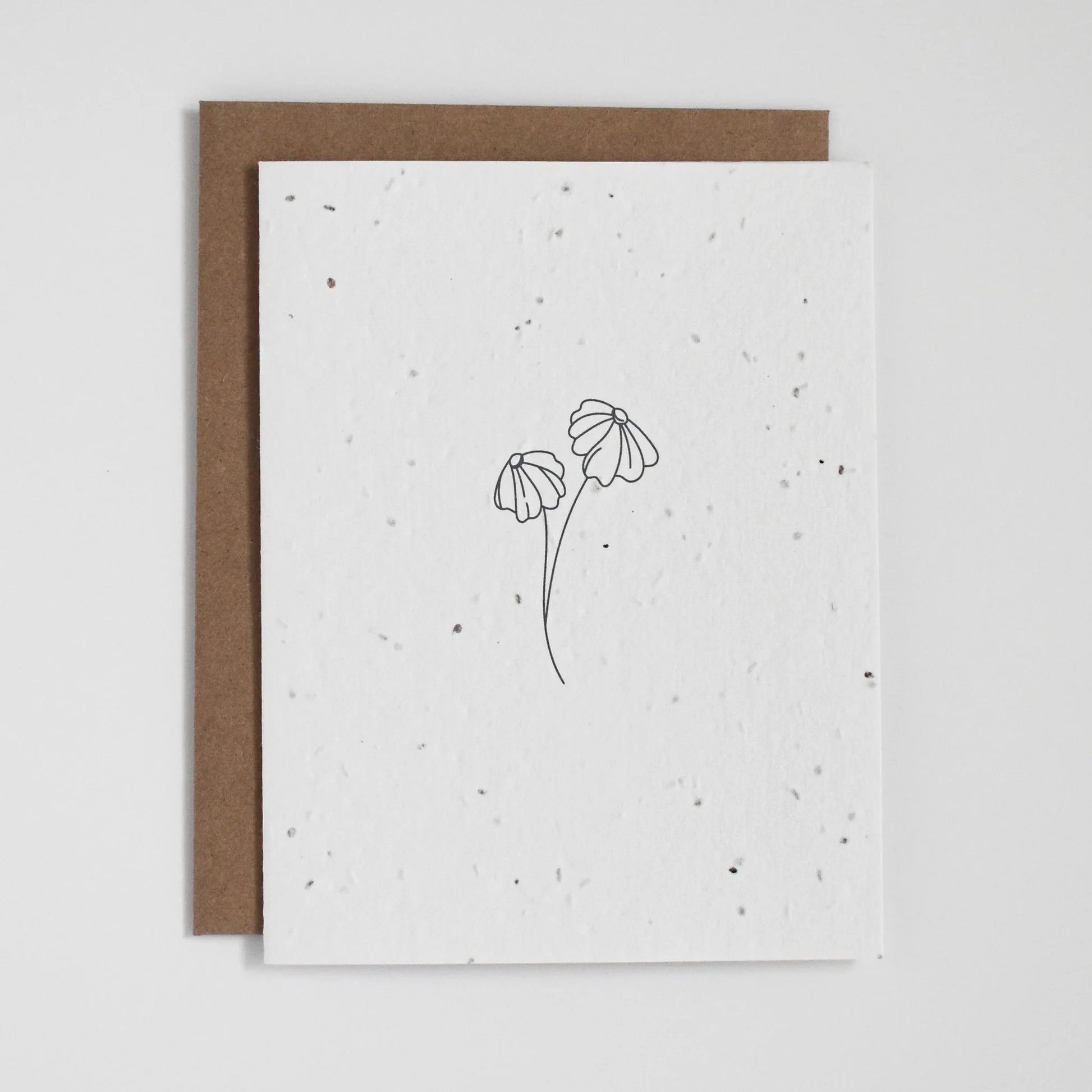 Cartes de vœux en papier à graines de fleurs sauvages à planter, fabriquées à partir de déchets biodégradables post-consommation. Chaque carte est de taille A2 (4,25" x 5,5") et comprend une enveloppe kraft recyclée. Les graines sont non invasives, sans OGM, testées pour leur pureté et approuvées pour la plantation.