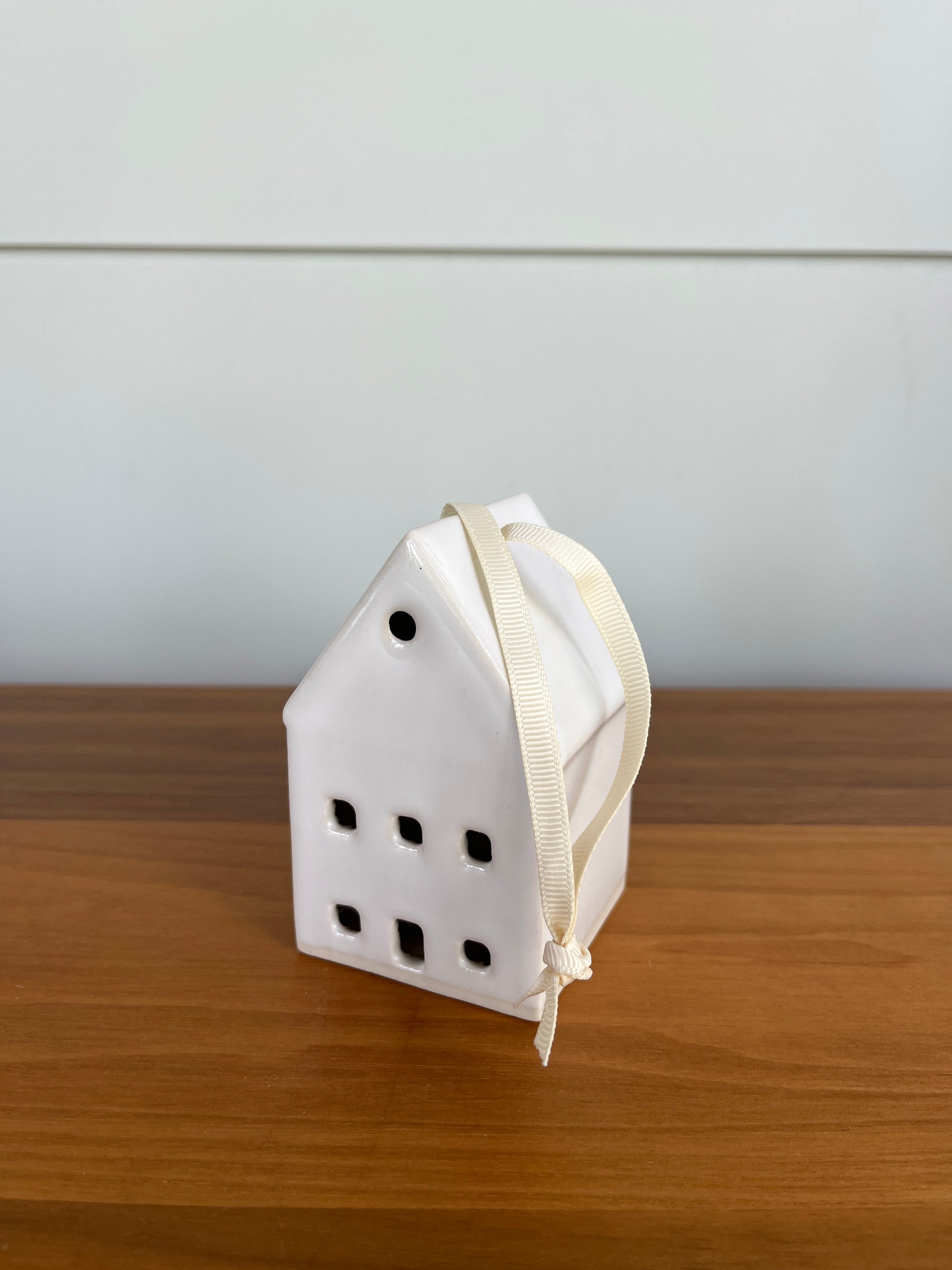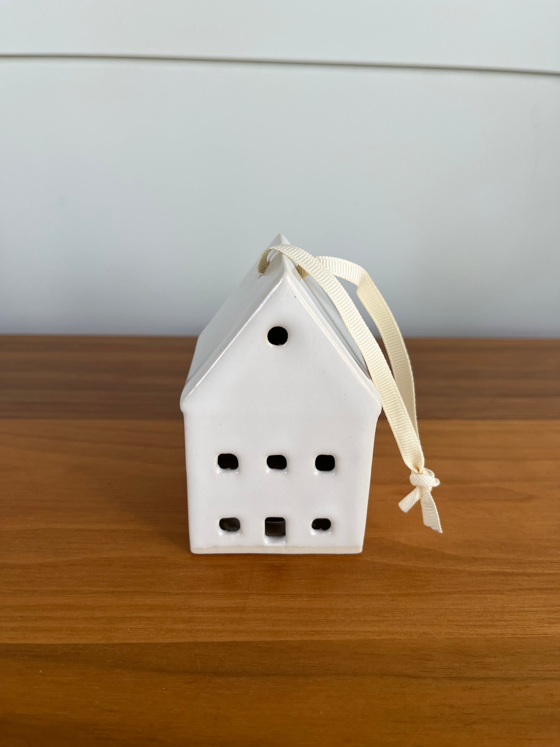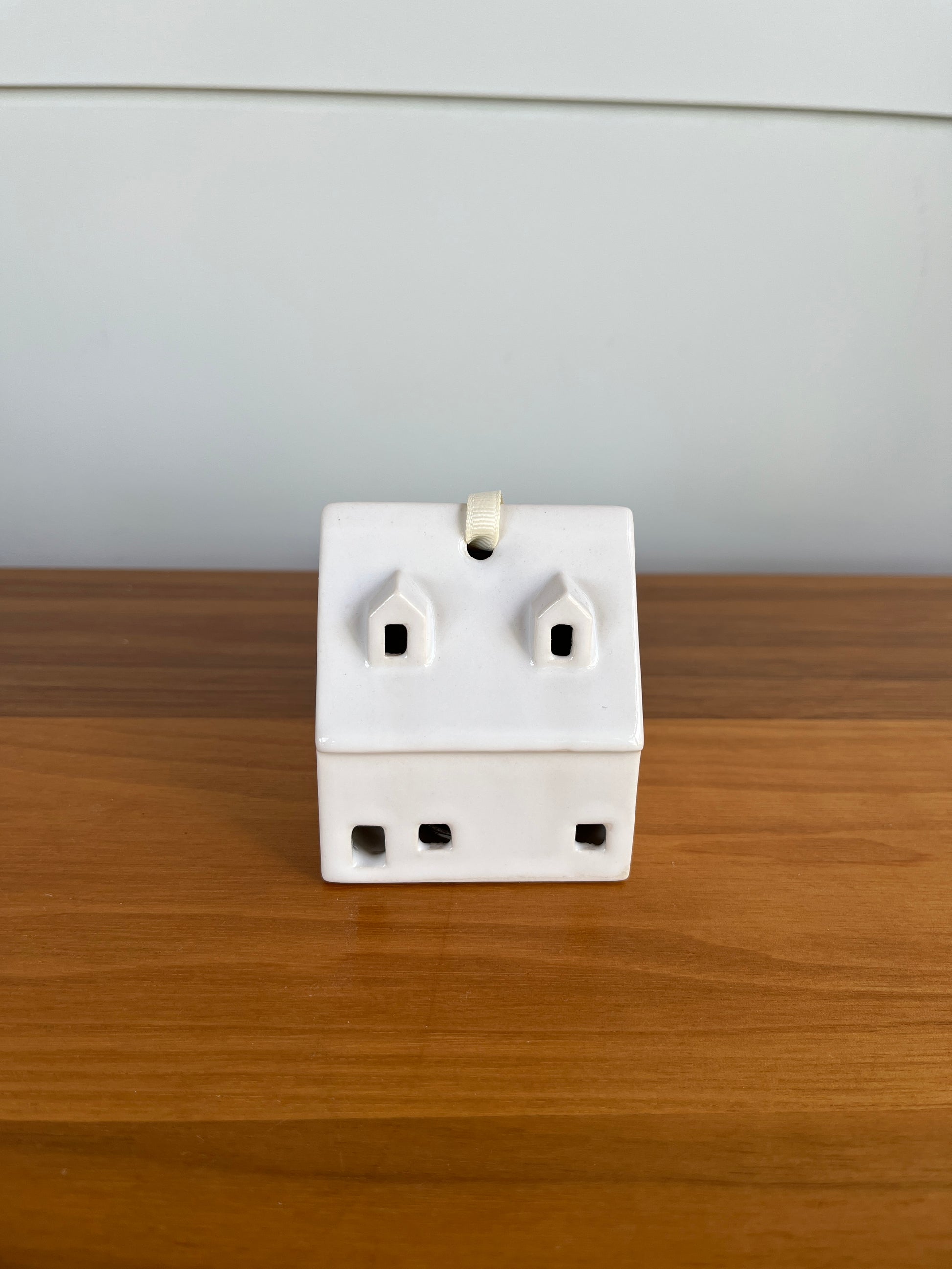 These unique white ceramic cottage ornaments were handcrafted by Canadian potter Mélissa Régnier of MR Poterie.