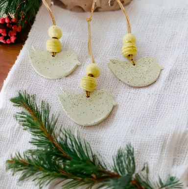 Adorables décorations de Noël fabriquées à la main à Halifax, en Nouvelle-Écosse, avec de l'argile, du sable de plage et des perles en bois. Elles sont légères et ne feront donc pas tomber les branches de votre arbre.