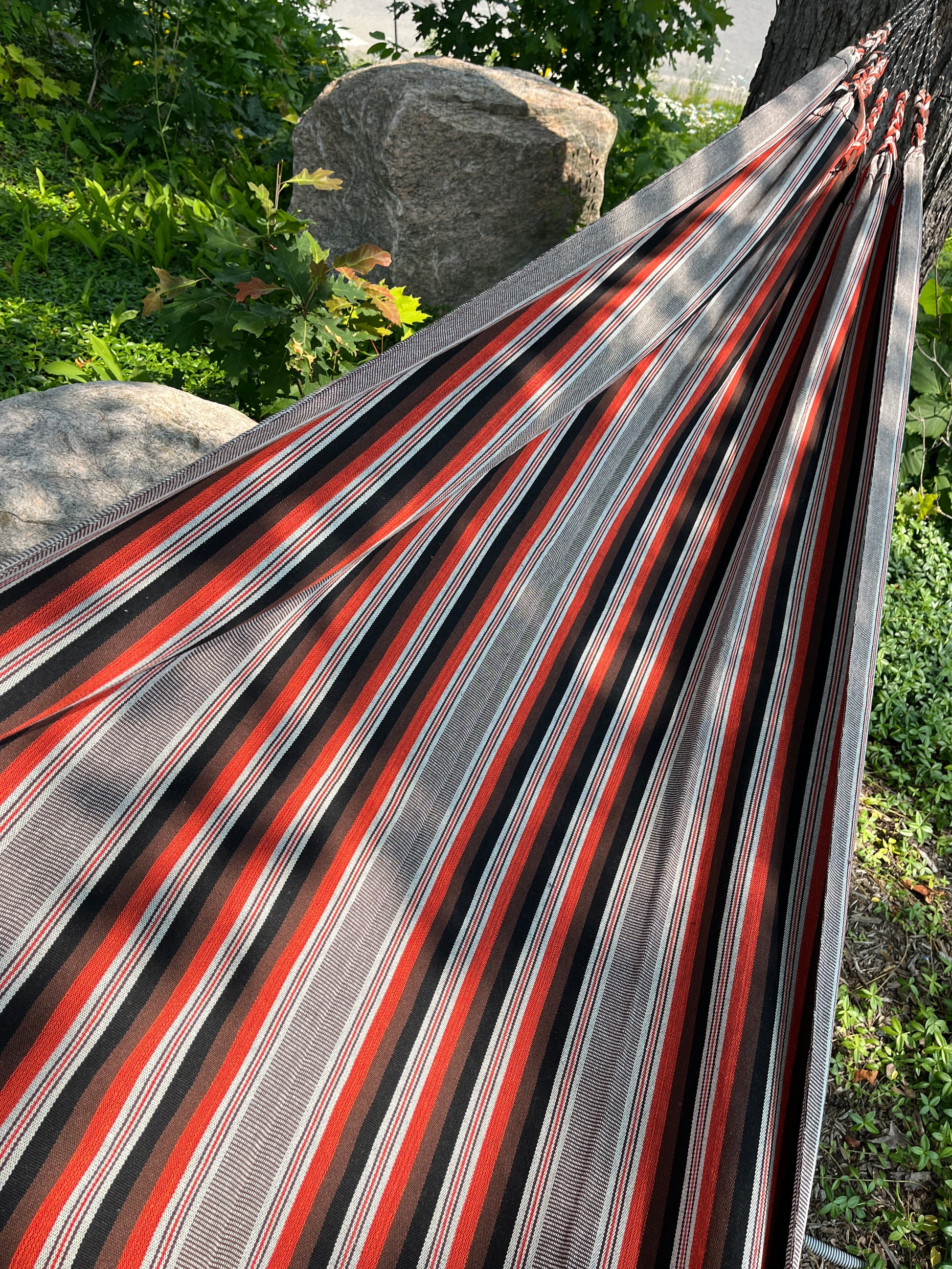 Perfect for your backyard, cottage, dock, or anywhere you crave a peaceful escape, this hammock combines artisanal beauty with reliable strength. Whether you're napping under the trees or reading by the lake, it's your new favourite way to relax.