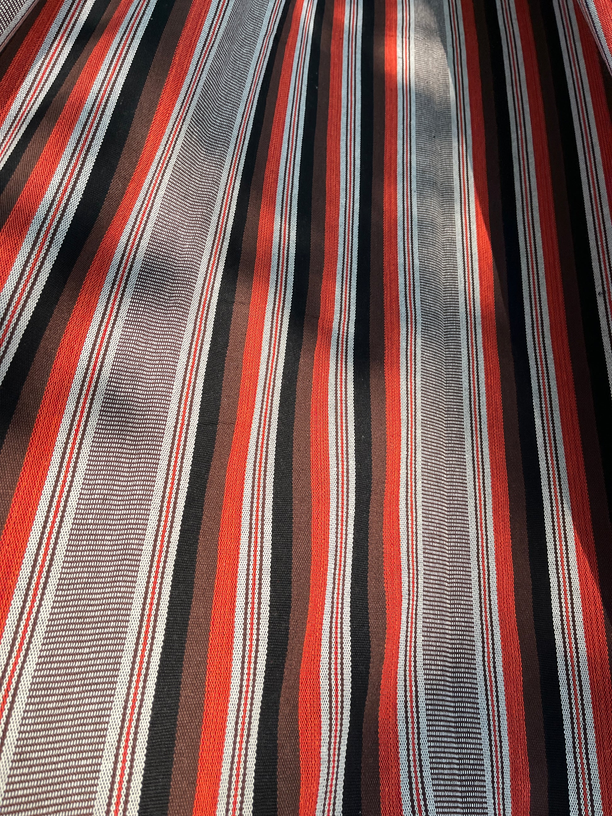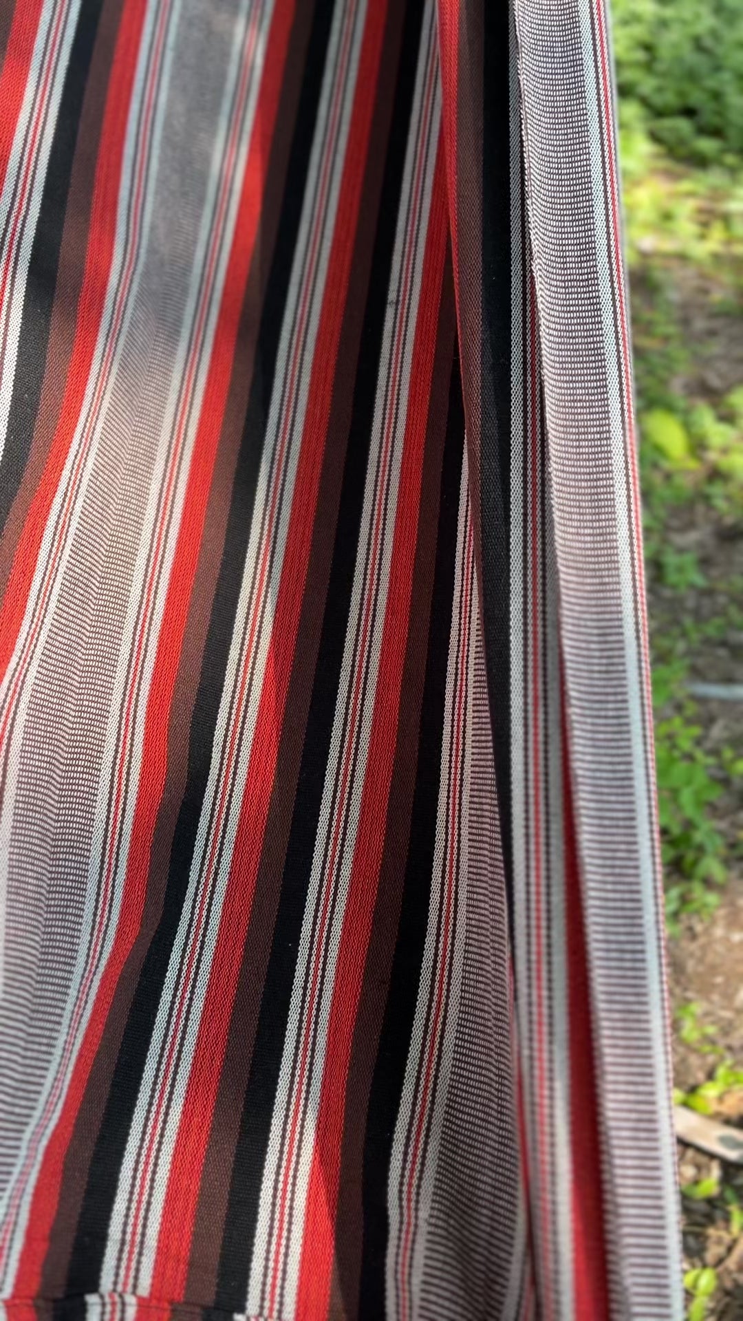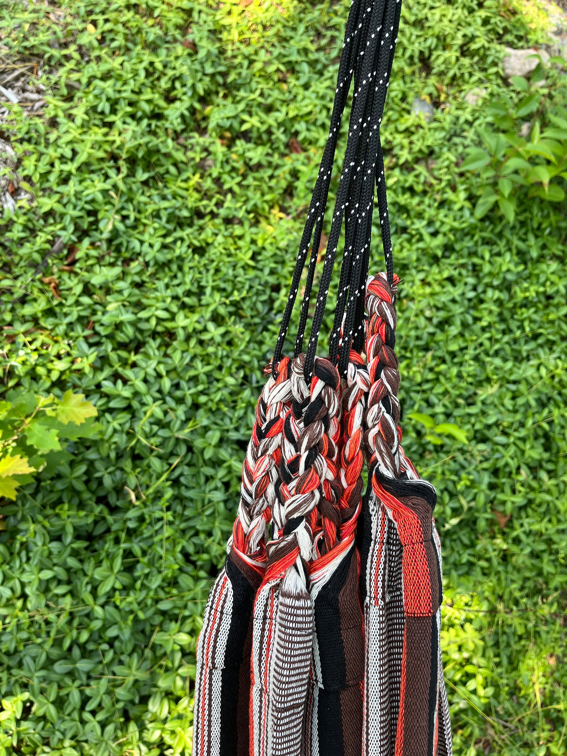 Unwind in style with this vibrant handwoven hammock, crafted on a vintage loom in the heart of Ecuador. Featuring bold stripes, each piece is a unique expression of traditional craftsmanship and modern durability. The body is made from soft, breathable cotton for ultimate comfort, while the suspension ropes are woven from strong polyester to ensure long-lasting use and weather resistance.