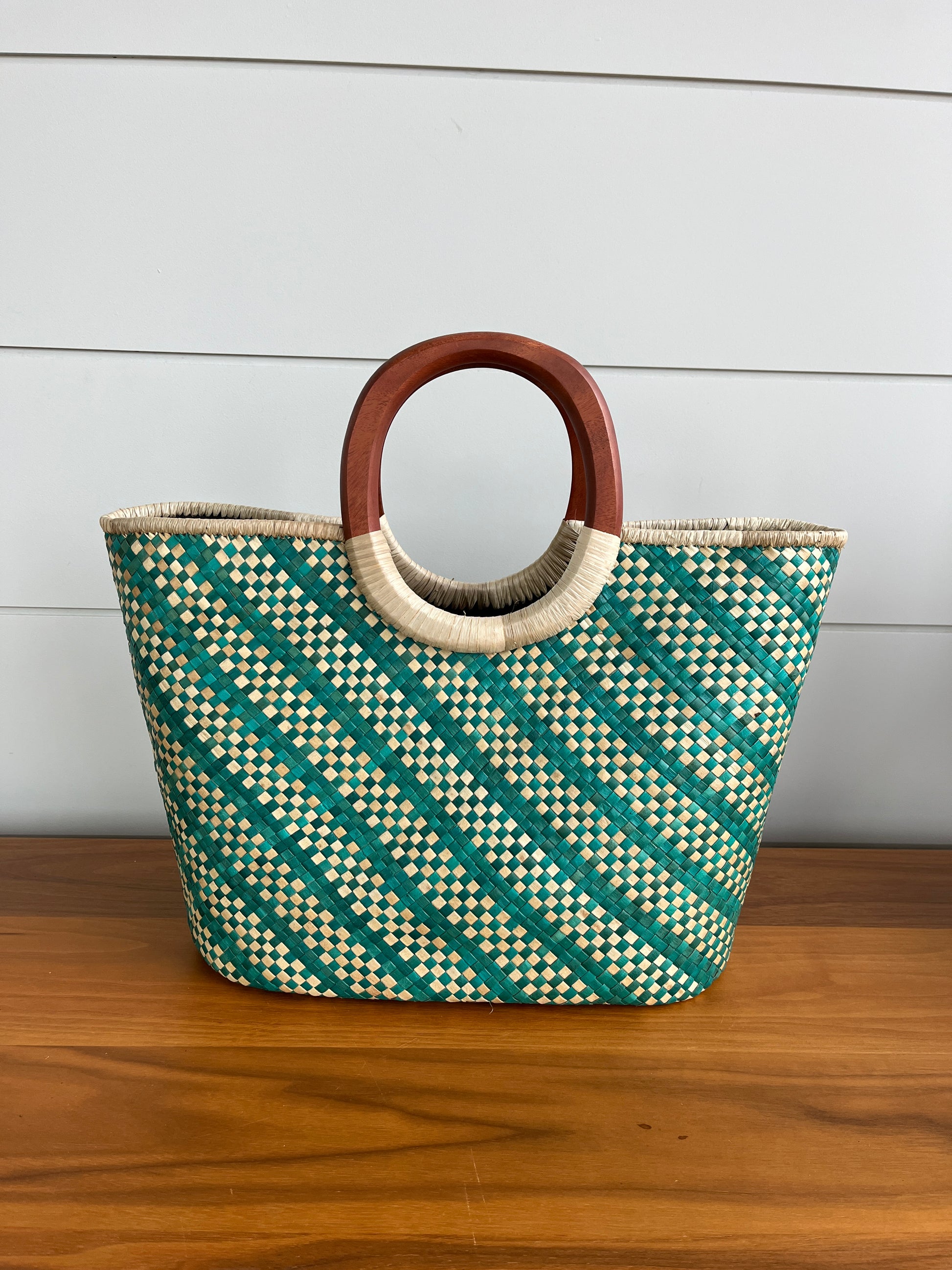 Sac fourre-tout tissé à la main | Émeraude avec naturel