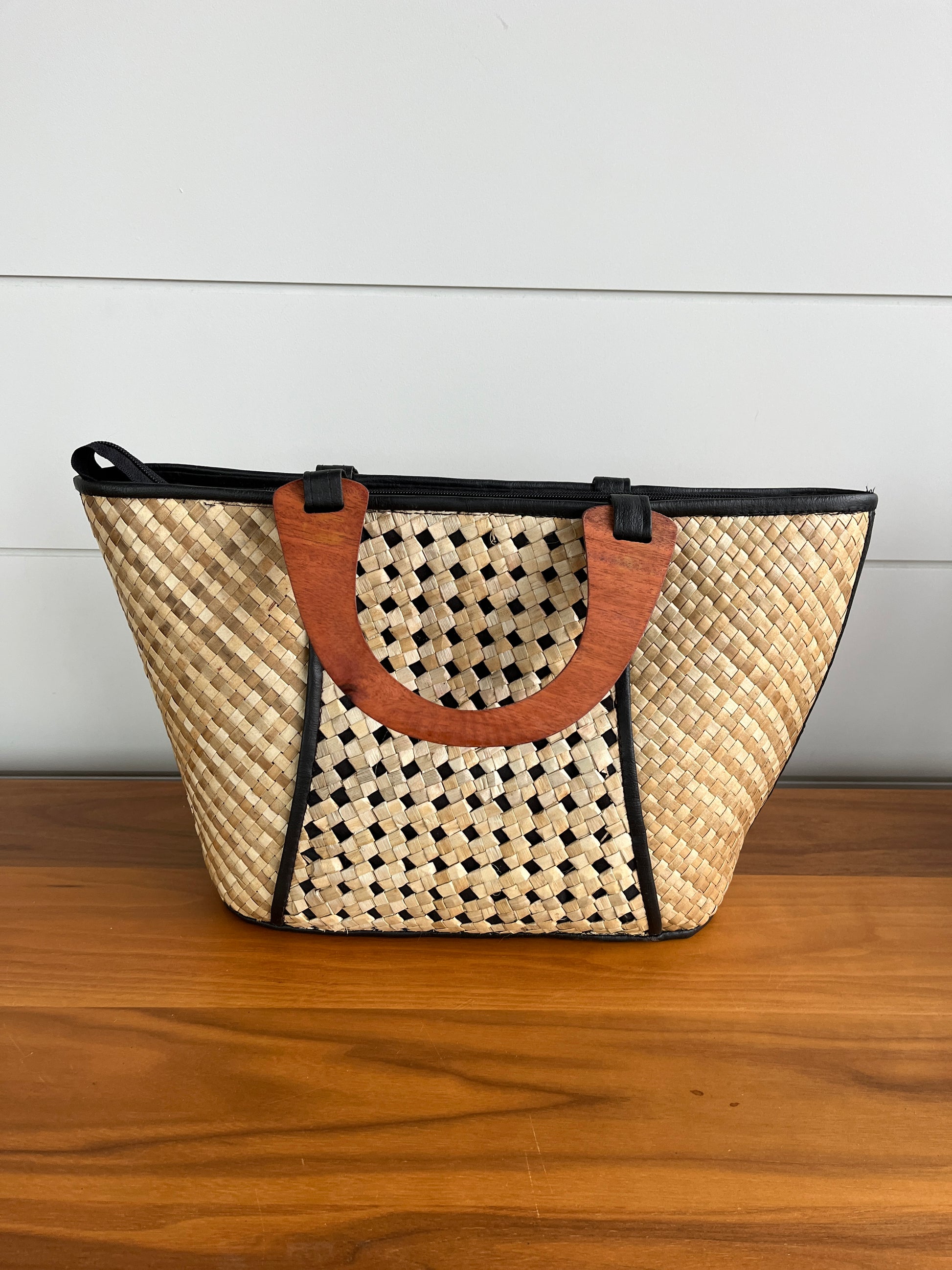 Sac fourre-tout tissé à la main | Naturel avec noir