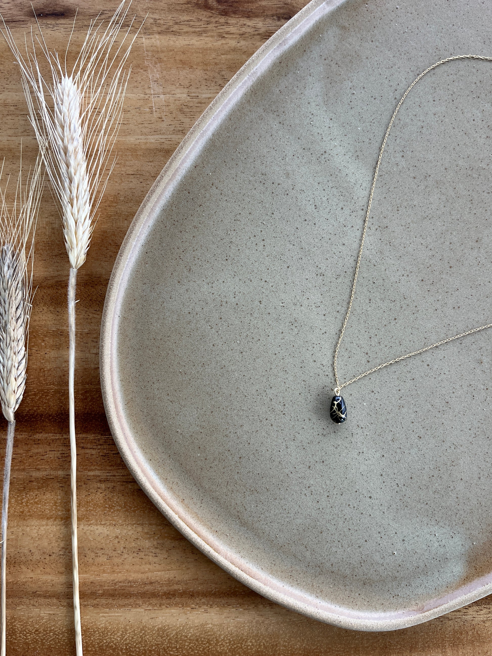 Dans l'art japonais du kintsugi, les poteries brisées sont recollées avec de l'or. De la même manière, la vie peut nous briser et nous laisser avec le sentiment d'être endommagés et « inférieurs », alors qu'en réalité, la transformation et la guérison peuvent nous conduire à la meilleure version de nous-mêmes. Cet élégant bijou inspiré du kintsugi est un magnifique rappel que vous n'êtes pas brisé, vous êtes magnifiquement entier.