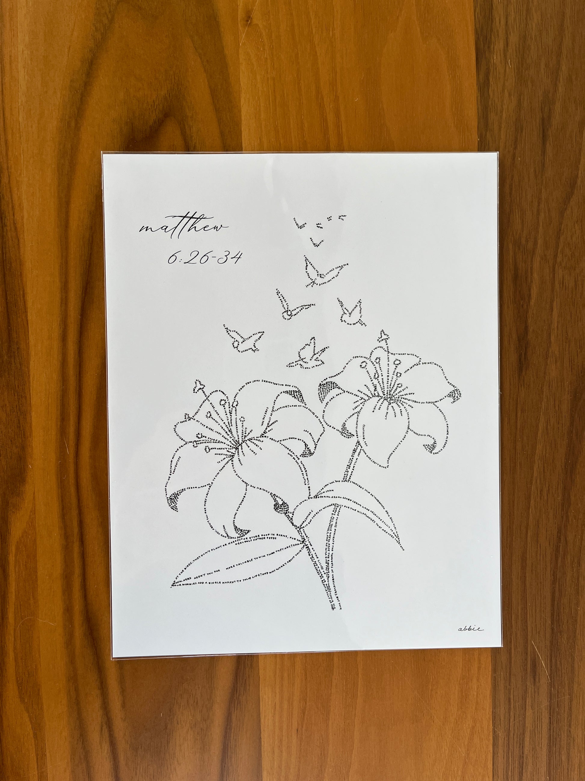 Lys et oiseaux (Matthieu 6) | Regard plus attentif 8x10