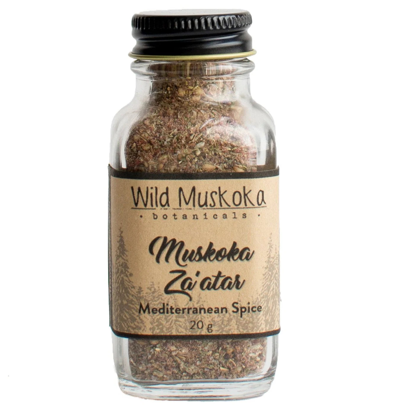 Za'atar is a staple Middle Eastern spice blend that is so versatile! It can be used on meats, veggies, rice, and breads. Wild Muskoka Staghorn Sumac (Rhus typhina) berries are the base of this spice with organically grown thyme, oregano, parsley from our garden and blended with ground rich sesame.