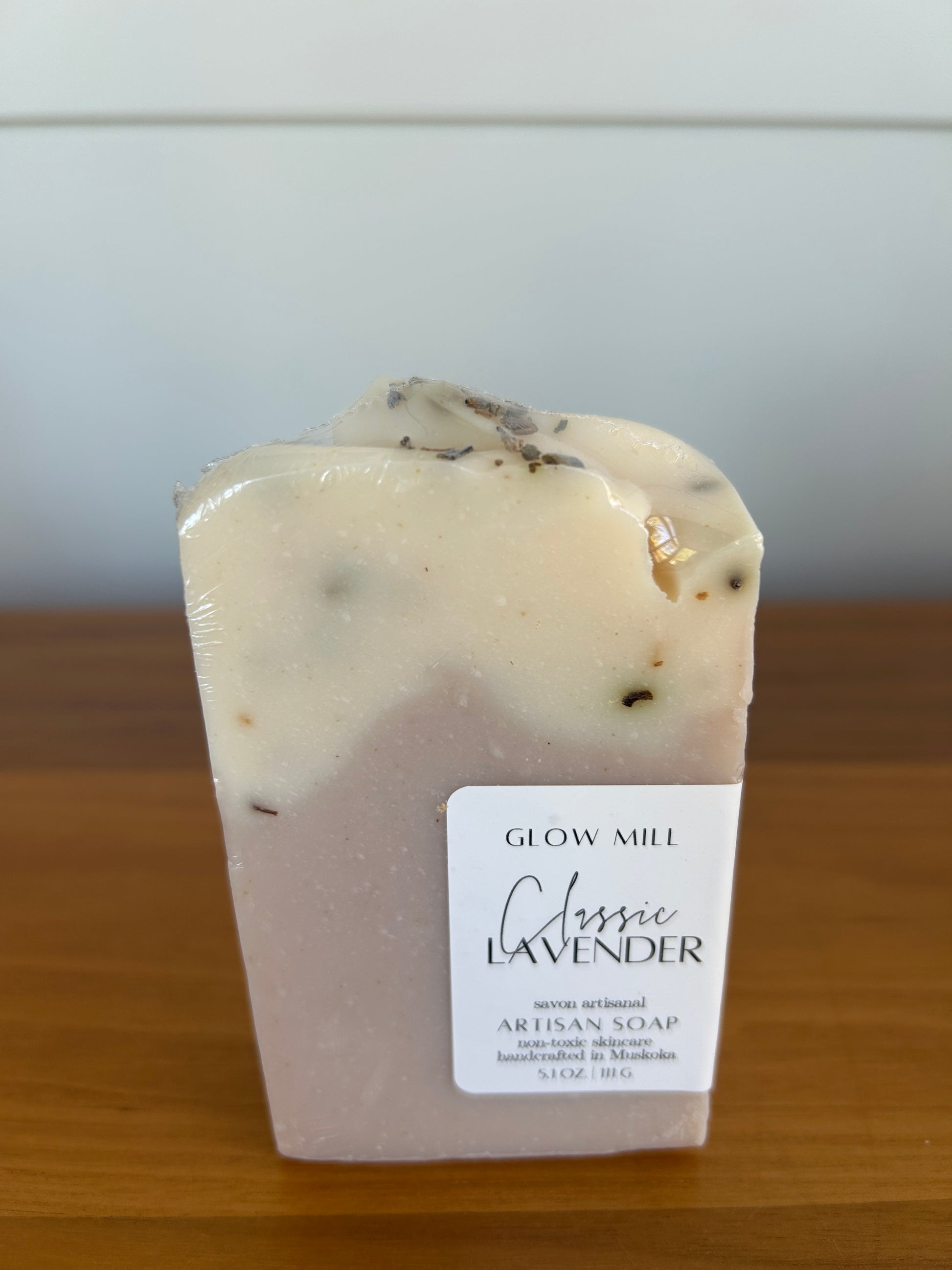 We love the bits of dried lavender and the subtle purple colour of the soap, it's a beauty by the sink and an excellent body and face soap for in the shower. Large bar soaps last for approximately 20 showers!