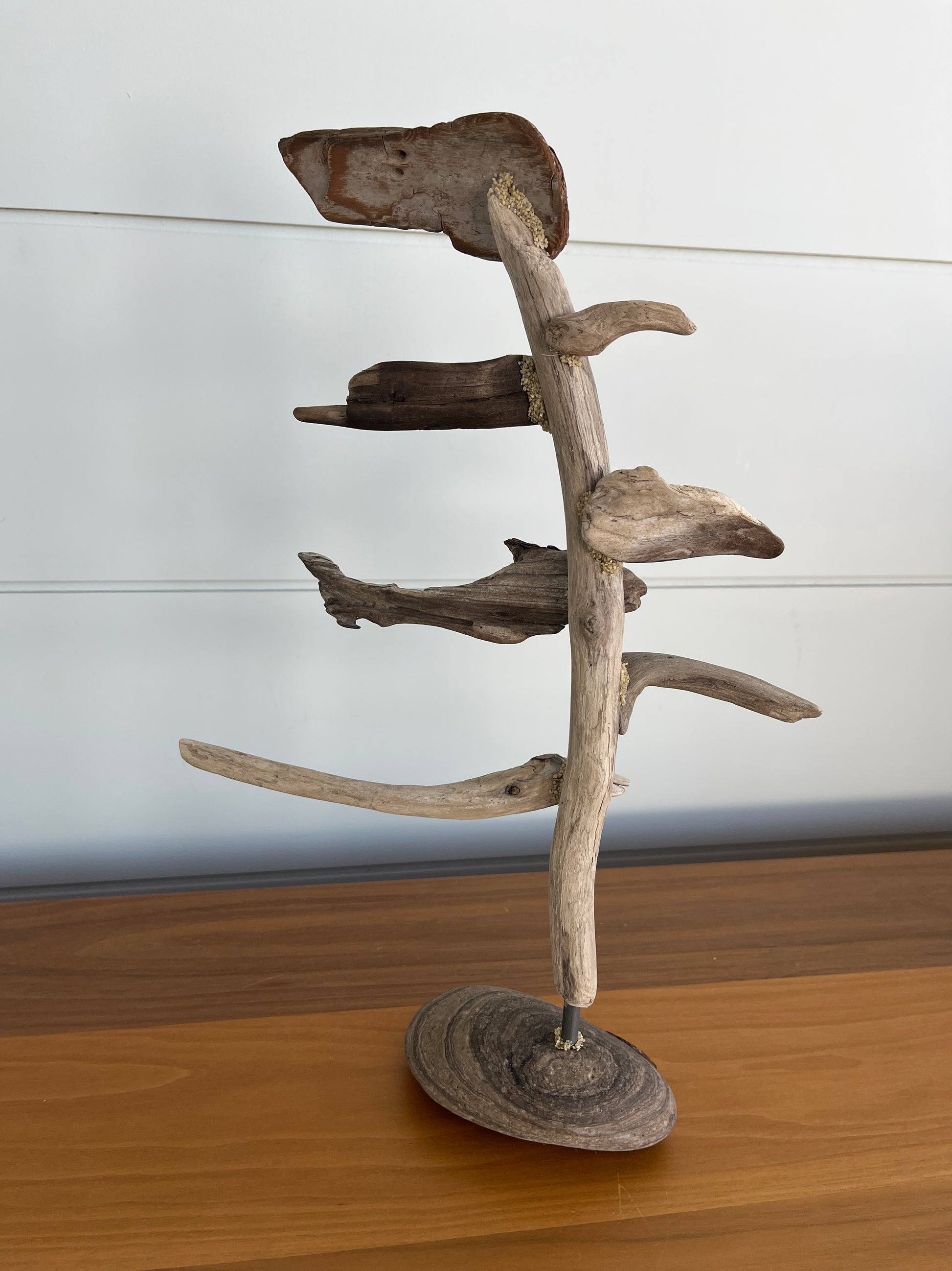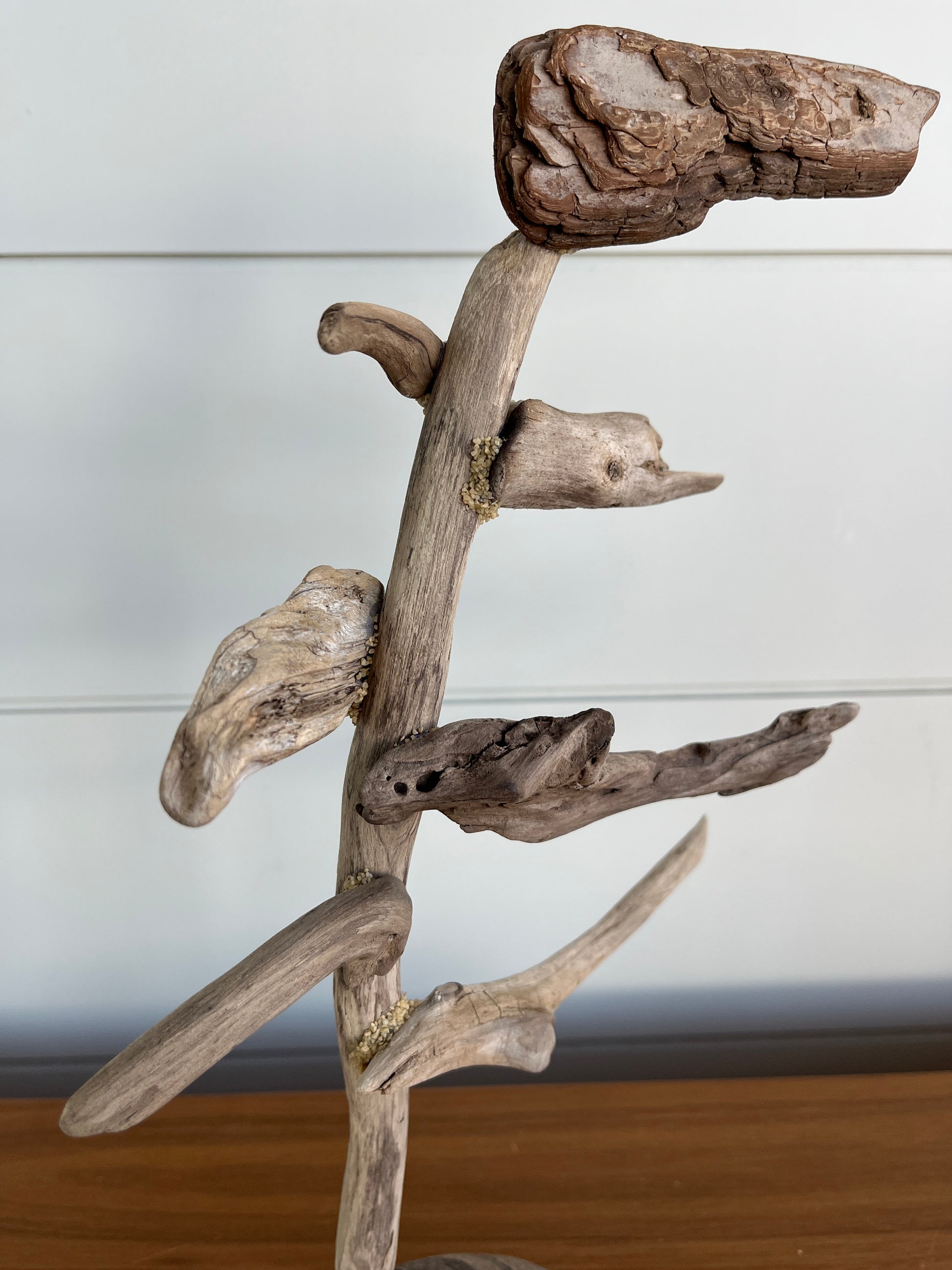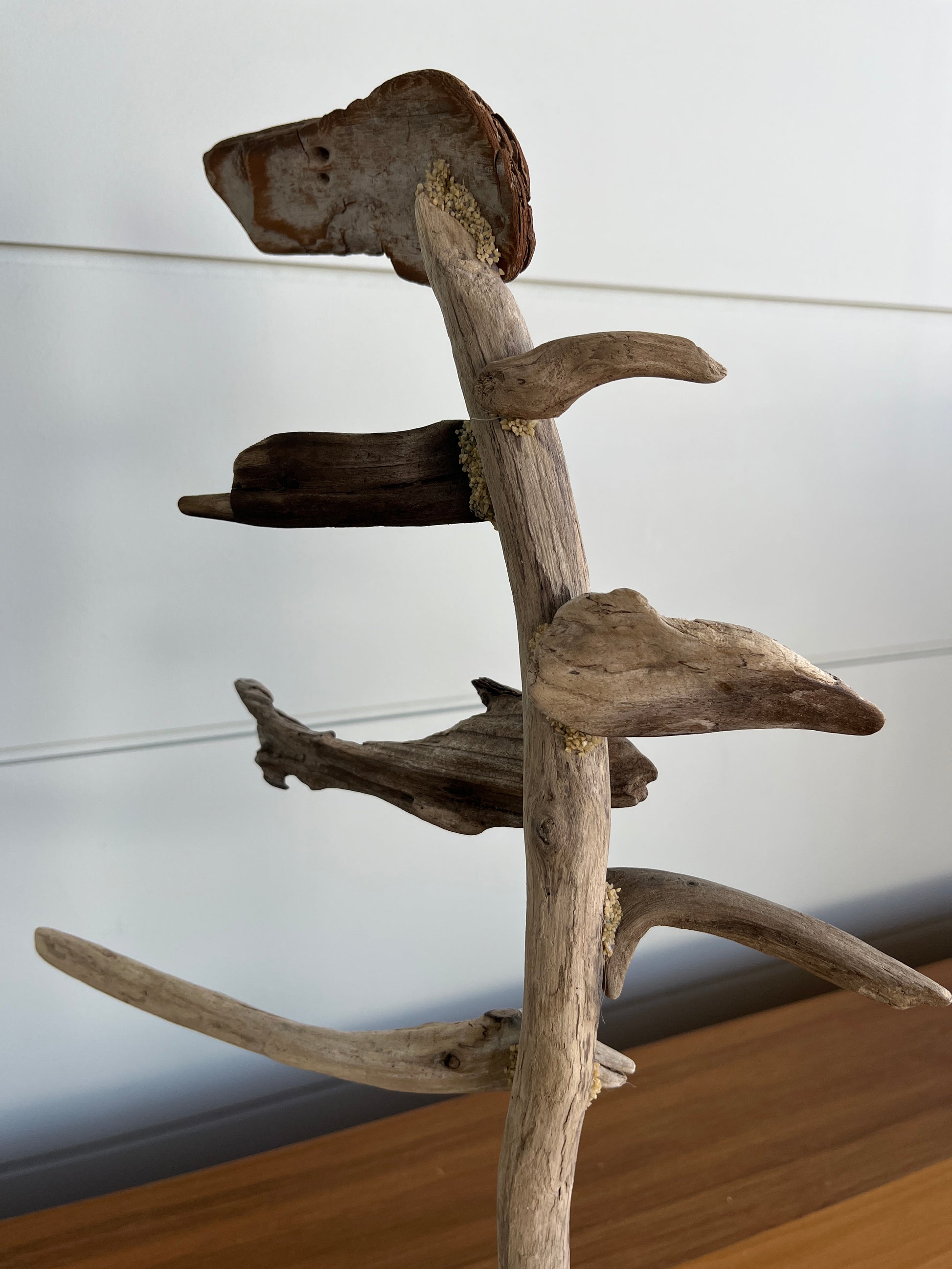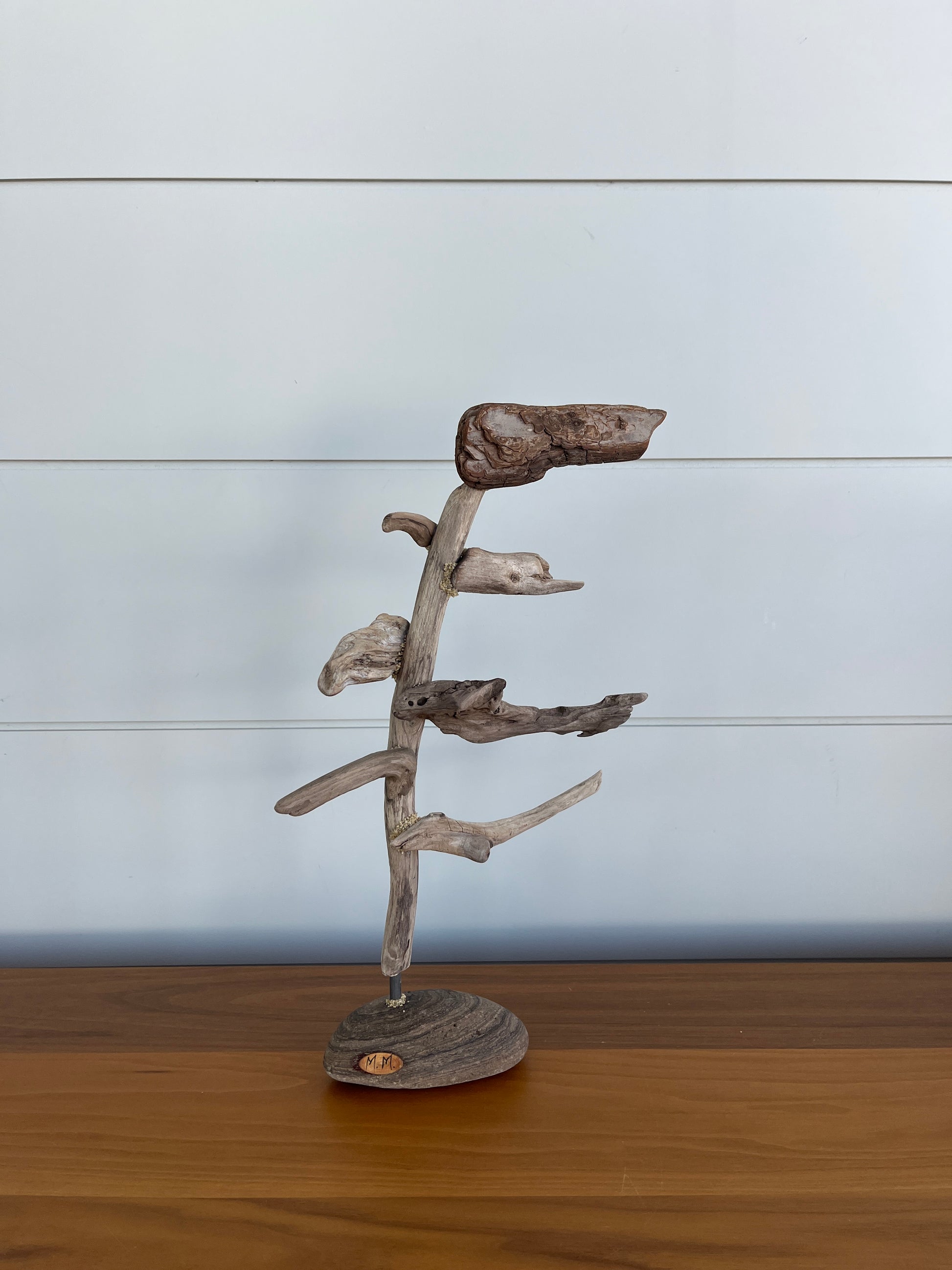 Transform your living space with our stunning Large Windswept Pine Driftwood Sculpture. Handcrafted by local artisan Michelle Milligan from natural driftwood, this windswept pine sculpture brings a touch of nature indoors. Its unique design creates a sense of movement and adds a rustic charm to any room. Elevate your home decor with this beautiful and one-of-a-kind piece.
