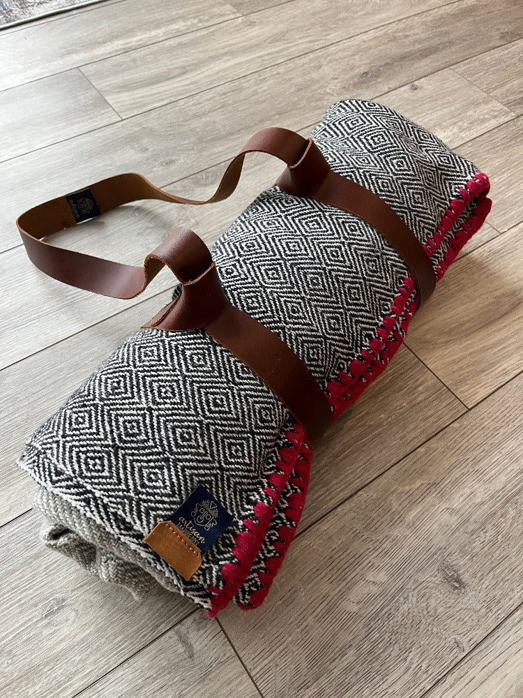 Notre sangle de transport en cuir épais est idéale pour transporter de gros objets cylindriques comme un tapis de yoga, une couverture ou une serviette de plage. Ces sangles de transport sont le compagnon idéal de l'une de nos couvertures en laine.