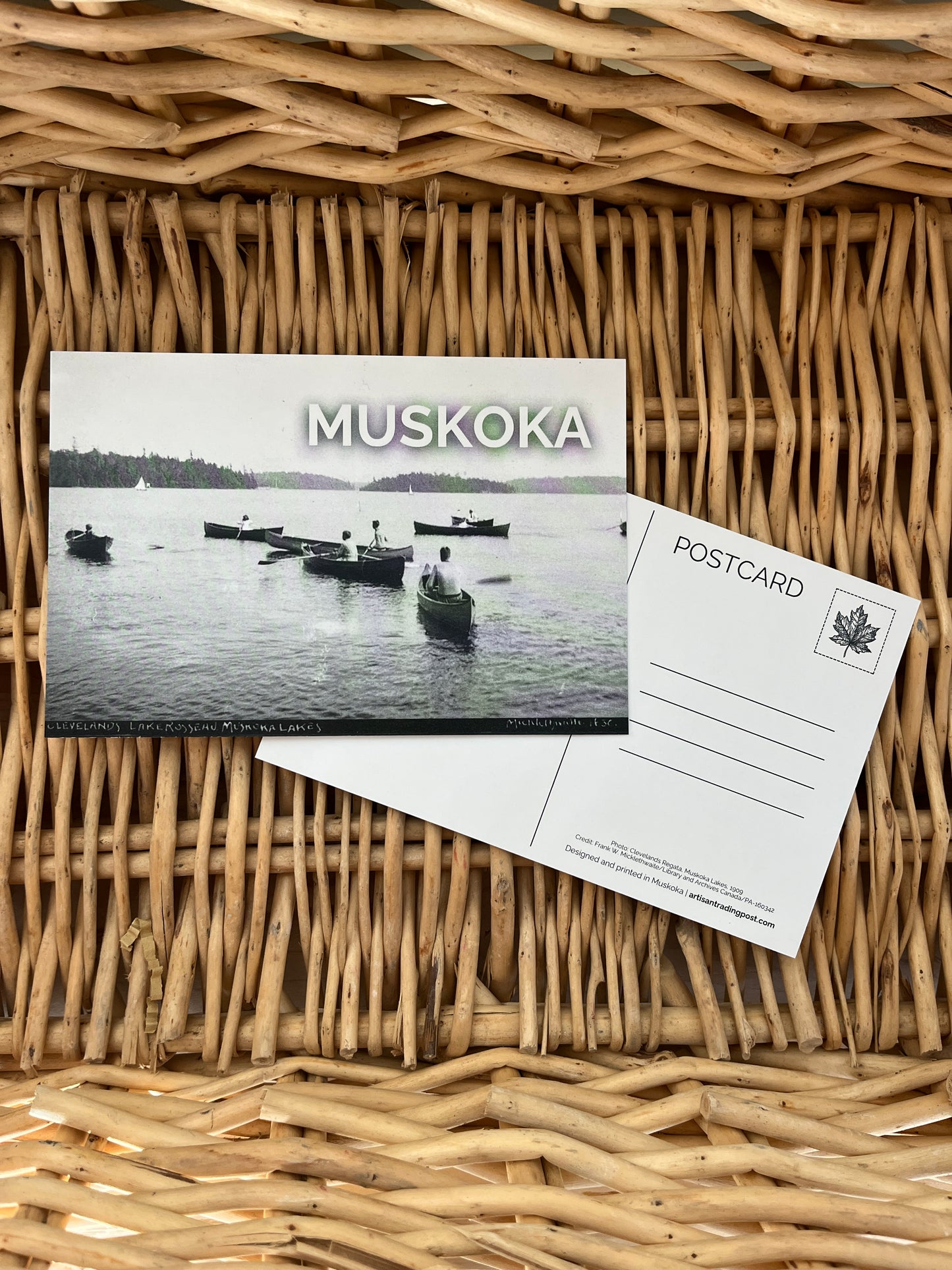 Take a trip back in time with our Clevelands Regatta vintage postcard! Featuring a 1909 photo of canoe competitors on Lake Rosseau, this postcard captures the excitement and spirit of the nostalgic Minett boat race. Perfect for Muskoka history buffs and lovers of all things vintage.