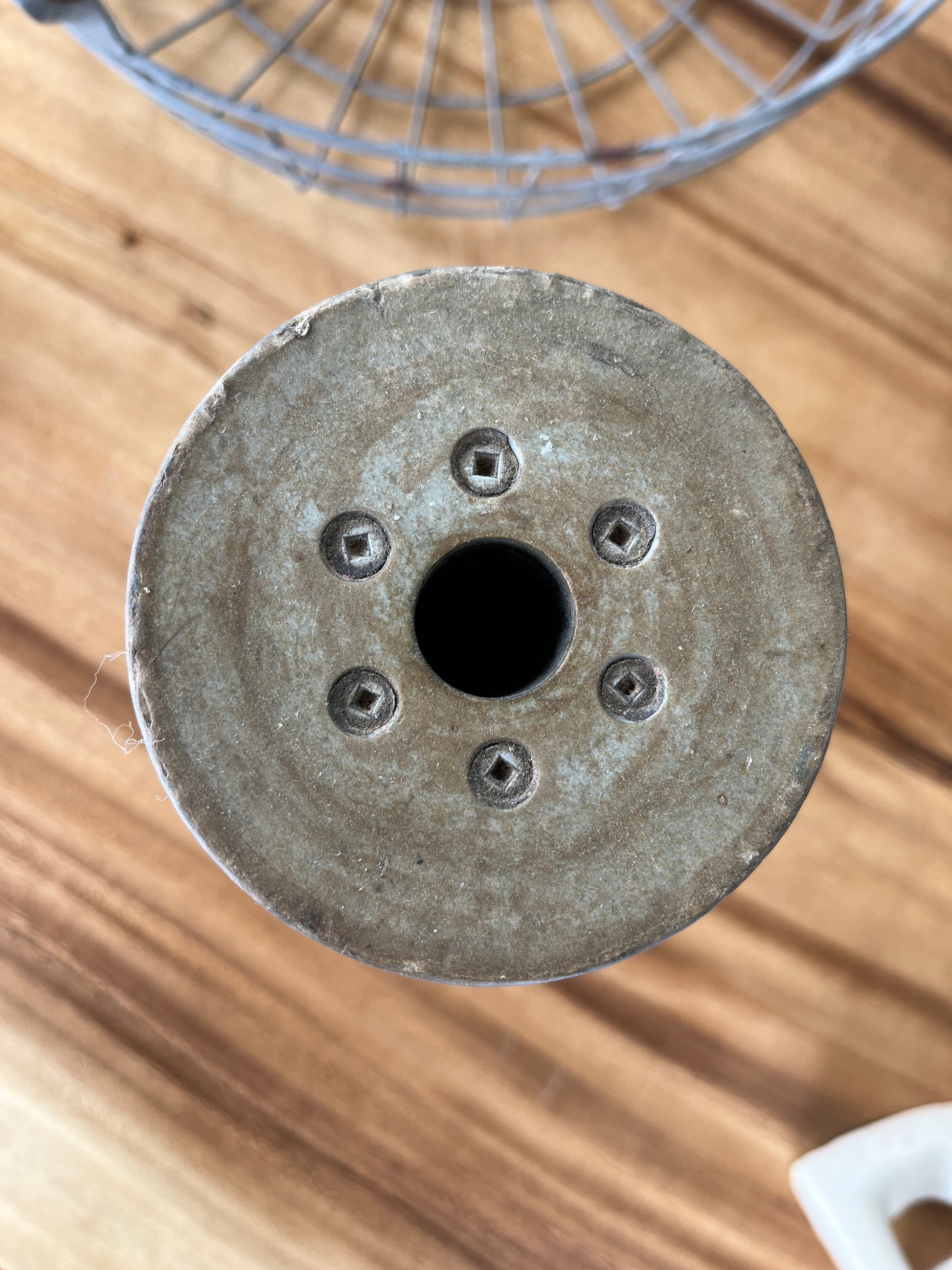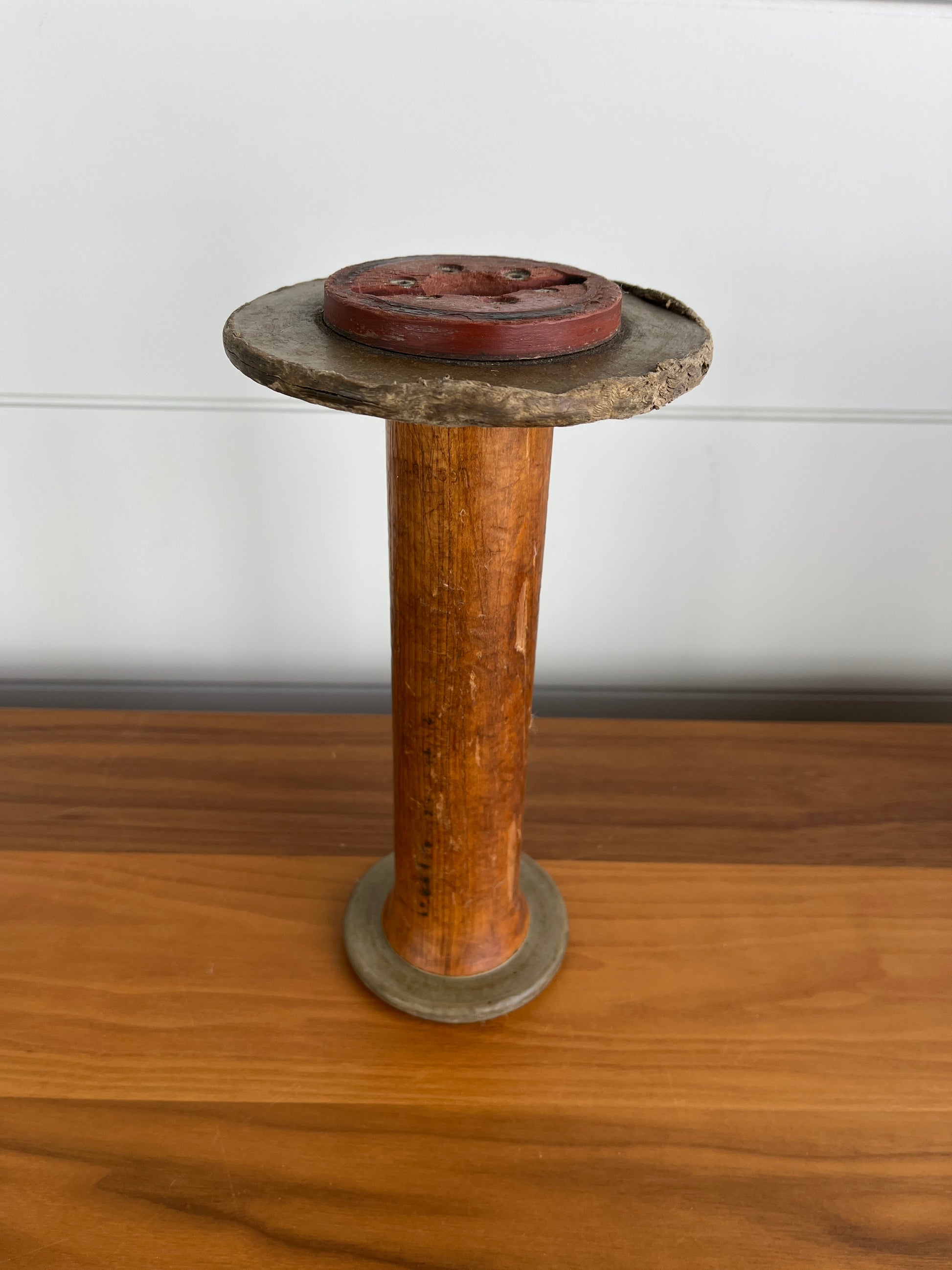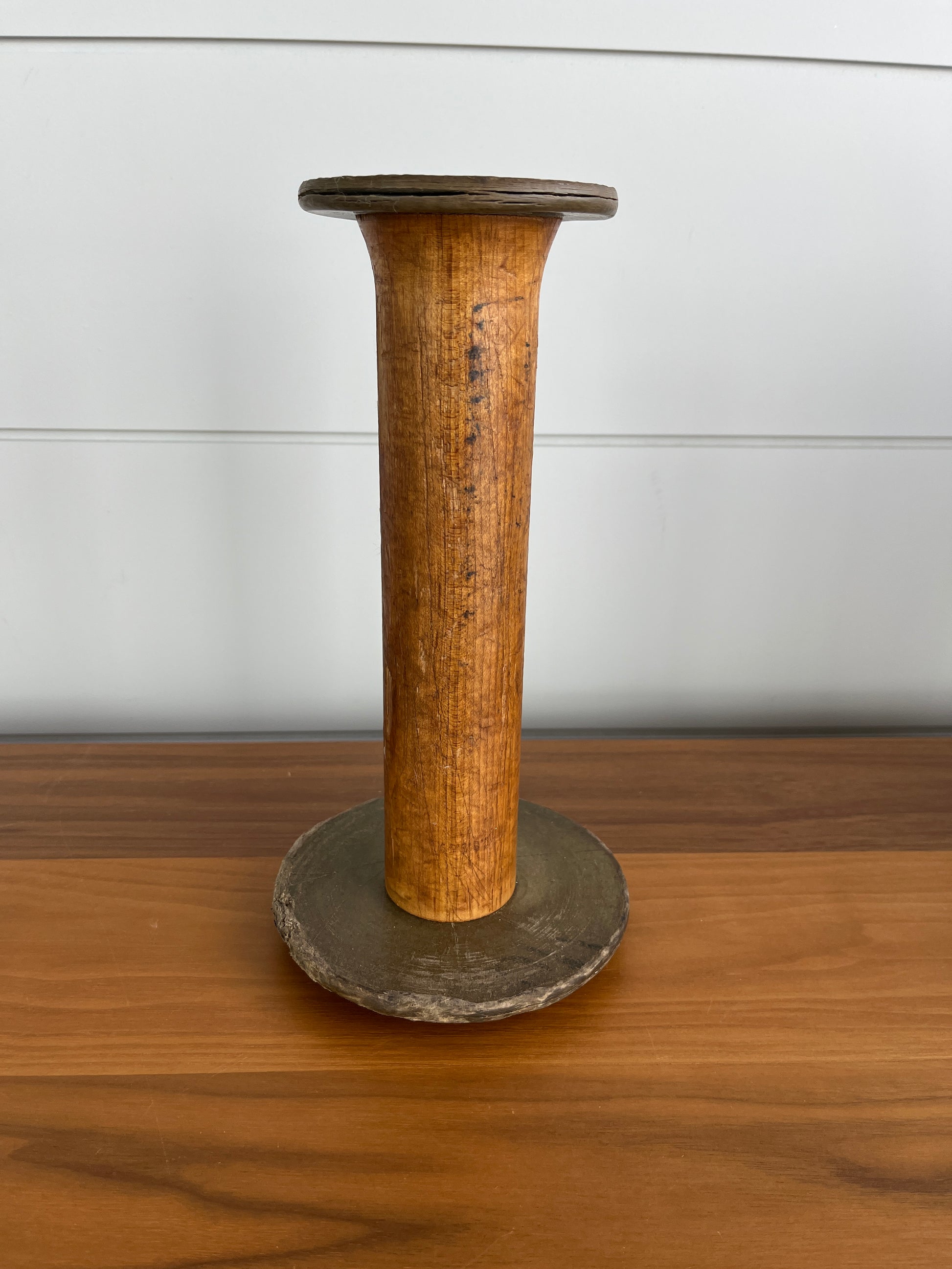 Historically used for industrial thread or cord, this large spool is a multipurpose decorative piece. Use it as a part of your curated centrepiece, a holder for ribbons and twine in a craft room, or a substantial mantle piece item. This spool brings charm to any display!