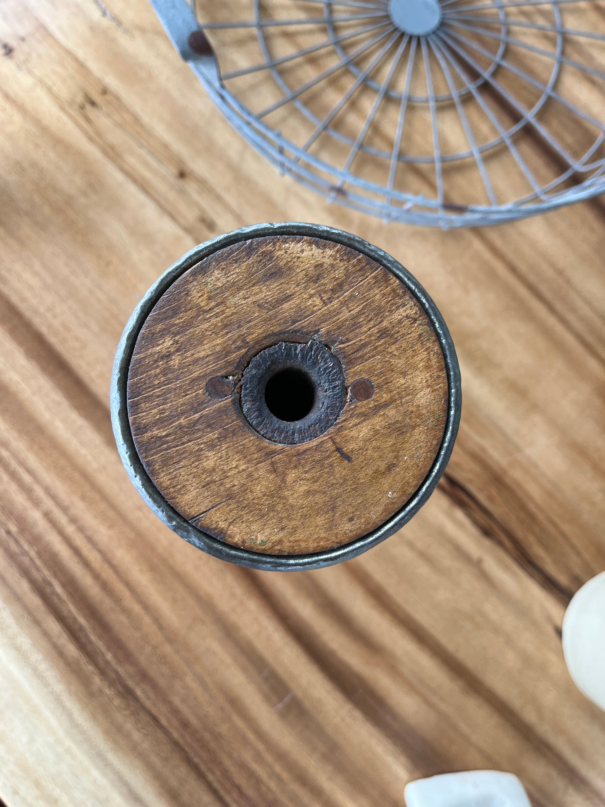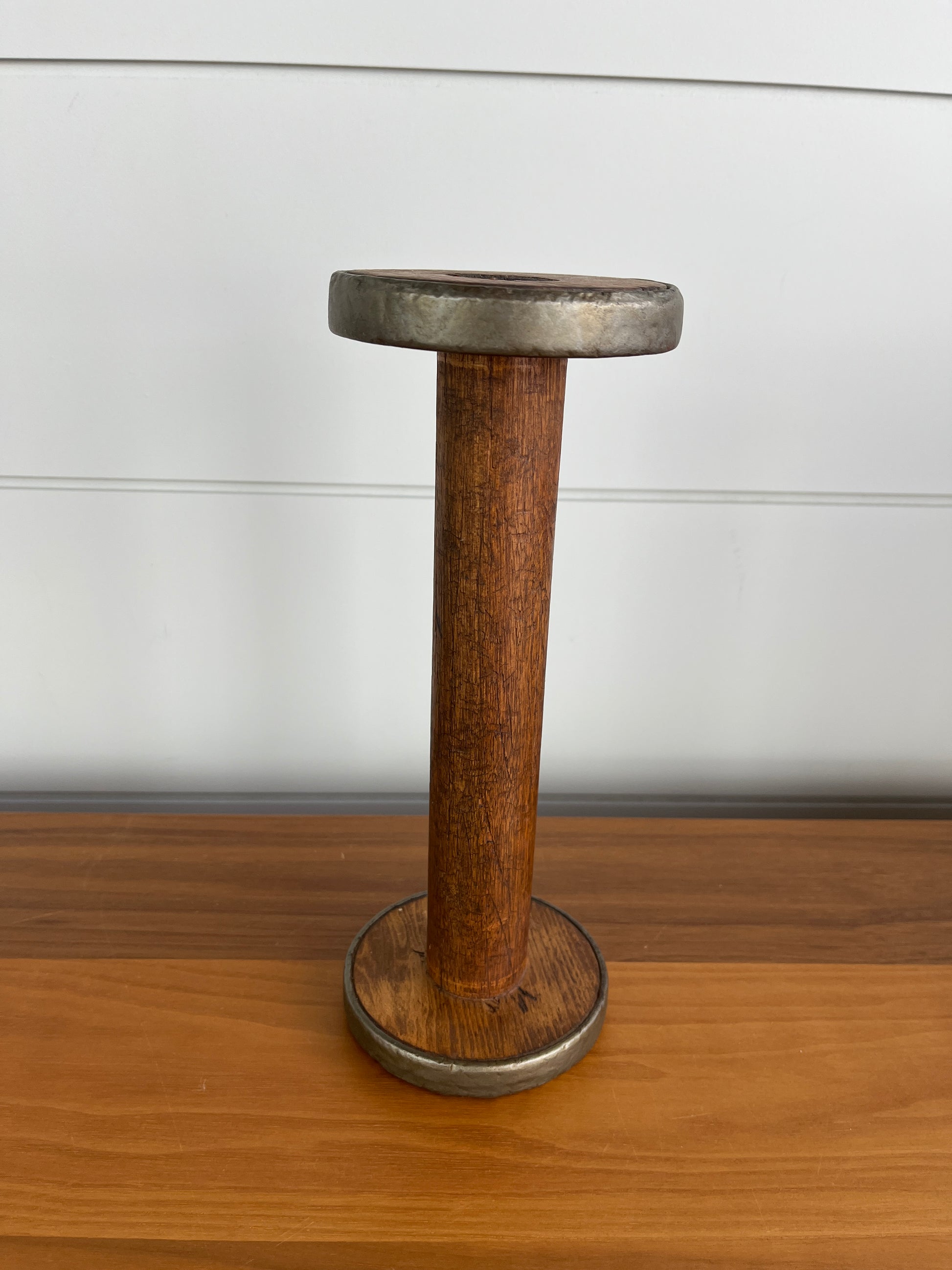 Historically used for industrial thread or cord, this large spool is a multipurpose decorative piece. Use it as a part of your curated centrepiece, a holder for ribbons and twine in a craft room, or a substantial mantle piece item. This spool brings charm to any display!